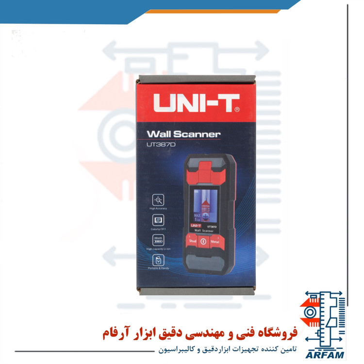 اسکنر دیوار یونیتی UNI-T UT387D به منظور تشخیص و شناسایی سیم ها و اتصالات الکتریکی، اشیاء فلزی و تیر ها وو ستون های چوبی، با دقت بالا طراحی و تولید شده است. از ویژگی ها و مشخصات کلی اسکنر دیوار یونیتی می توان به مجهز بودن به سنسور القائی الکترو مغناطیسی، هشدار صوتی قابل تنظیم توسط کاربر، صفحه نمایش LCD مجهز به نور پس زمینه به منظور مشاهده راحت تر داده های اندازه گیری شده در محیط های تاریک و کم نور توسط کاربر و قابلیت تشخیص فلز، چوب و اتصالات الگتریکی درون دیوار اشاره کرد.