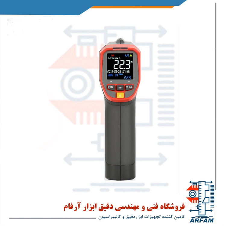 ابعاد این دستگاه 48 x 74 x 160 میلی متر، سایز صفحه نمایش EBTN رنگی آن 30 x 30 میلی متر، وزن آن 204 گرم و رنگ دستگاه قرمز و خاکستری است.ویژگی هارنجمدلUT301Cمحدوده اندازه گیری دما