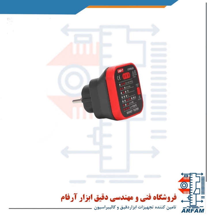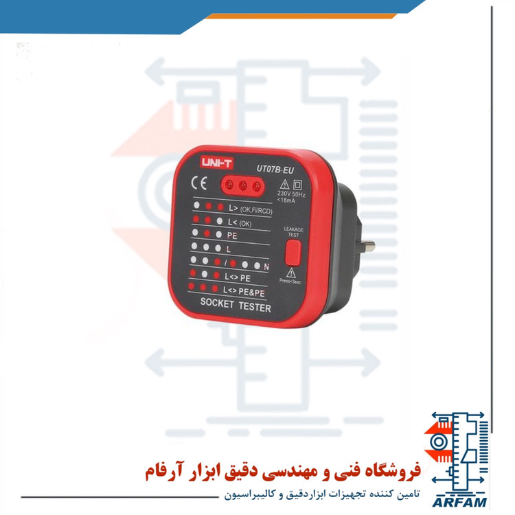 دستگاه تست سریع خطاهای سوکت سیم، سوکت اتصال به زمین، با ولتاژ بهره برداری 230 ولت و جریان بهره برداری کمتر از 10 میلی آمپر، محصول کمپانی یو نی تی (UNI-T) است. تستر پریز، RCD ، نول و ارت یونیتی UNI-T UT 07B-EU جهت چک کردن و تست RCD ، تست ارتینگ ، نول و محافظ جان به پریز متصل میشود و به کمک LED های موجود بر روی دستگاه هر گونه نقصی در هر یک از قسمت های ارتینگ ، کلیدهای RCD و نول را در شبکه داخلی نمایش میدهد.