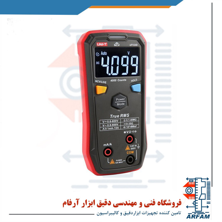 مولتی متر یونیتی UNI-T UT123D برای شناسایی خودکار ولتاژ AC/DC و سنجش جریان مستقیم و متناوب به صورت True RMS طراحی شده است. از ویژگیهای این مولتی متر قابل حمل، رابط کاربری آسان است و کاربر با فشردن تنها یک دکمه میتواند تمام حالتهای سنجش پارامترهای مقاومت، ظرفیت خازن، دیود و تست اتصال کوتاه و ... را به صورت دستی انتخاب کند.