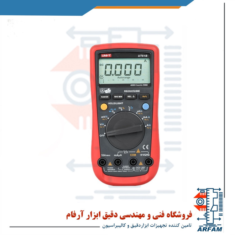 مولتی متر دیجیتالی یونیتی مدل +UT61B دارای ویژگی های مولتی متری کامل است که پارامترهای مدار را اندازه گیری میکند و در حوزه کاری الکترونیک و تست و تعمیر مدارهای الکتریکی و الکترونیکی، در آزمایشگاه های آموزشی، کارگاه ها و کارخانه های صنعتی کاربردی است. مولتی متر دیجیتالی UT61B پلاس، دارای تنظیم رنج خودکار هست و همچنین با صفحه نمایش بزرگ خود با نور پس زمینه و با اندازه گیری مقایسه ای و مقدار ماکزیممم ، مینیمم و مقدار نسبی است و قابلیت اتصال به کامپیوتر و گرفتن داده های اندازه گیری شده را بصورت خروجی و آنالیز این داده ها را روی سیستم دارد.