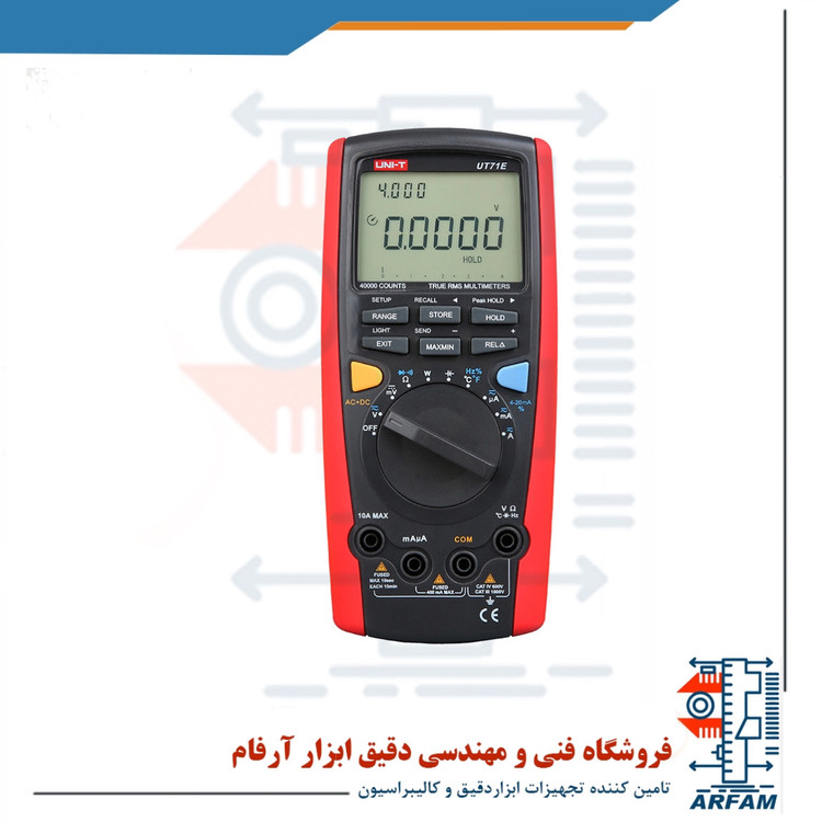مولتی متر دیجیتال پرتابل یونیتی UNI-T UT71E یکی از حرفه ای ترین مولتیمتر های سری UT71 می باشد که توانایی اندازه گیری مقادیر ولتاژ ، جریان متناوب و مستقیم، مقاومت تا 40 مگا اهم،خازن و فرکانس همچنین دما را داراست تنظیم رنج اندازه گیری و ذخیره سازی و فراخوانی مقادیر نمایش ماکزیمم و مینیمم اصلی ترین ویژگی های این مولتی متر محسوب می شوند.مولتی متر دیجیتال UT71E برای انجام اندازه گیری های الکترونیکی و تجهیزات اتوماسیون کارخانه، تعمیر انواع برد الکتریکی استفاده می شود تمامی این ویژگی ها مولتی متر دیجیتال پرتابل UNI-T UT71E را به یکی از پرطرفدارترین و بهترین تجهیزات تعمیر و نگهداری بین مهندسین و تکنسین های برق و الکترونیک تبدیل نموده است.مولتی متر هوشمند دیجیتال UT71E برند یونیتی ابزاری هوشمند و دقیق جهت عیب یابی سریع و دقیق مشکلات پیچیده الکترونیکی، اتوماسیون کارخانه ها ، توزیع برق و تجهیزات الکترونیکی می باشد.این محصول ابزار بسیار مناسبی جهت اندازه گیری ولتاژ AC/DC ؛ جریان AC/DC ؛ مقاومت ؛ ظرفیت خازنی ؛ فرکانس و دما می باشد.از ویژگی های مهم و قابل توجه این مولتی متر می توان به قابلیت اندازه گیری دقیق ولتاژ AC/DC تا 1000 ولت ؛ جریان AC/DC تا 10 آمپر ؛ مقاومت تا 40 مگا اهم ؛ فرکانس را تا 400 مگا هرتز ؛ و دما را از 40- تا 1000 درجه سلسیوس و از 40- تا 1832 درجه فارنهایت اشاره کرد . علاوه بر این، مولتی متر هوشمند دیجیتال UT71E برند یونیتی قابلیت بالای نمایش داده ها تا 40000 مقدار ؛ ذخیره داده ها ؛ تنظیم فواصل زمانی اندازه گیری داده ها ؛ باز خوانی داده ها ؛ دیتا لاگر ؛ پورت USB و فناوری بلوتوث Bluetooth جهت انتقال دادهای ذخیره و ثبت شده را نیز دارد.