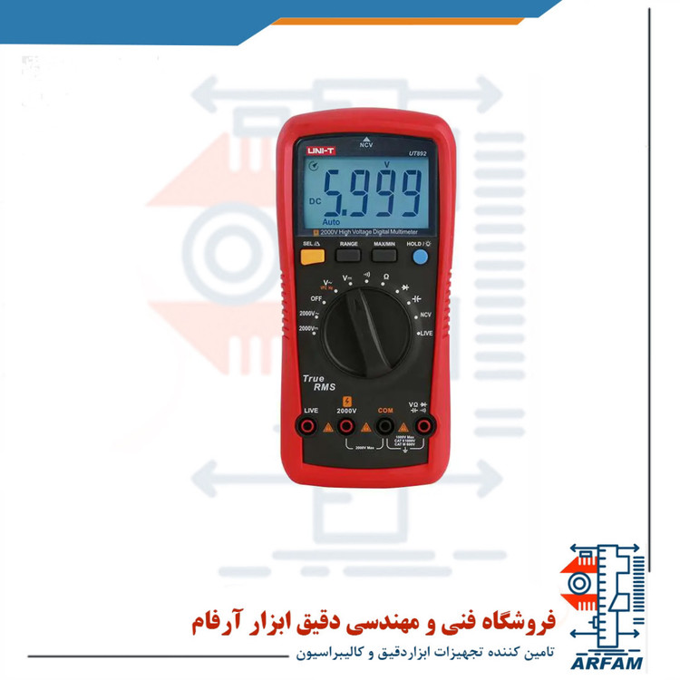 دستگاه مولتی متر دیجیتالی ولتاژ بالا UT892 اندازه گیری ولتاژ AC/DC تا 2000 ولت را با حفاظت در محدوده کامل اضافه بار فراهم می کند. همچنین قابلیت اندازه گیری فرکانس تا 10 کیلو هرتز، مقاومت تا 60 مگا اهم، ظرفیت خازنی تا 60 میلی فاراد را دارد؛ این دشتگاه دارای حالت کنترل کننده فرکانس متغیر VFC برای اندازه گیری دقیق ولتاژ تا 600 ولت در درایوهای موتور فرکانس متغیر و دستگاه های دارای نویز است. این دستگاه دارای صفحه نمایش LCD با نور پس زمینه جهت سهولت کار در محیط های کم نور و تاریک؛ نشانگر کاهش باتری و خاموشی خودکار جهت صرفه جویی در میزان مصرف باتری و حفظ طول عمر دستگاه می باشد را دارا است. این دستگاه دارای ردیاب برق غیر تماسی و یا NCV نیز می باشد.