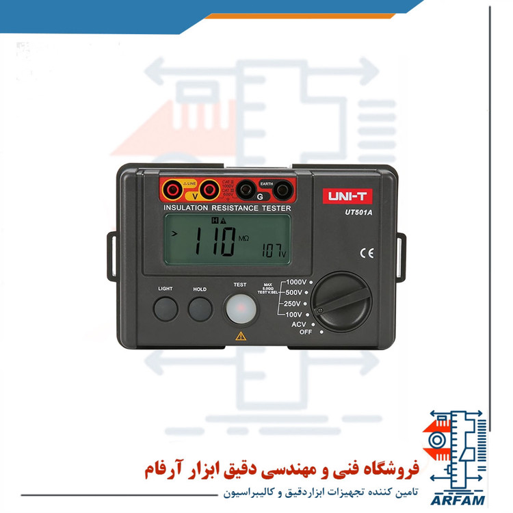 - تستر مقاومت عایق مدل UNI-T UT501A دارای نمایشگر 2000 داده ای با نور پس زمینه