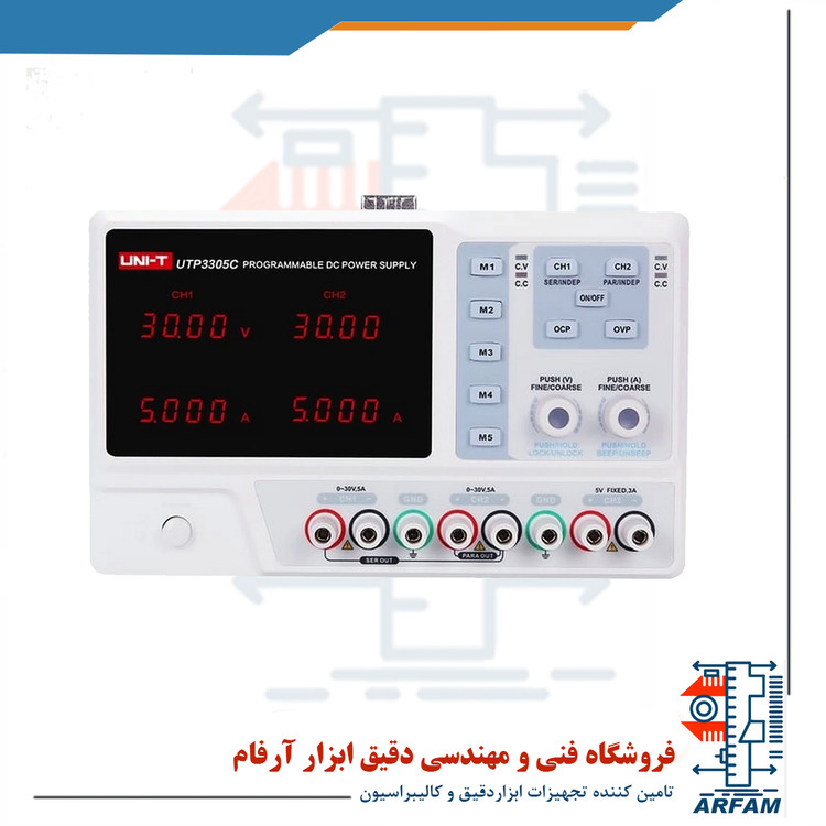 منبع تغذیه یونیتی مدل UNI-T UTP3305C یک منبع تغذیه آزمایشگاهی هست که با دریافت برق مستقیم شهری 110 یا 220 ولت و تبدیل آن به ولتاژ و جریان مناسب می باشد. این منبع تغذیه، دارای دو کانال خروجی جهت ولتاژ انتخابی در دامنه 0 تا 30 ولت، با دقت 20 میلی ولت می باشد. از دو کانال خروجی آن میتوان جریانی در رنج 0 تا 5 آمپر با دقت 10 میلی آمپر گرفت. همچنین دارای یک کانال با خروجی ولتاژ ثابت 5 ولت و جریان ثابت 3 آمپر می باشد.