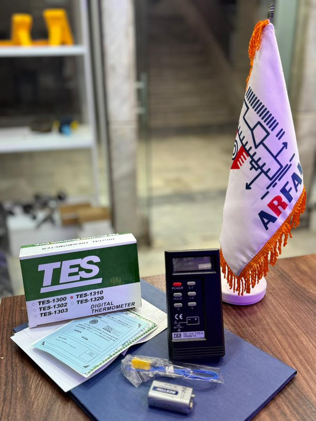 - **دماسنج دیجیتال TES-1310**: دستگاه اصلی با رابط دیجیتالی برای خواندن و تعامل با دادههای دما.