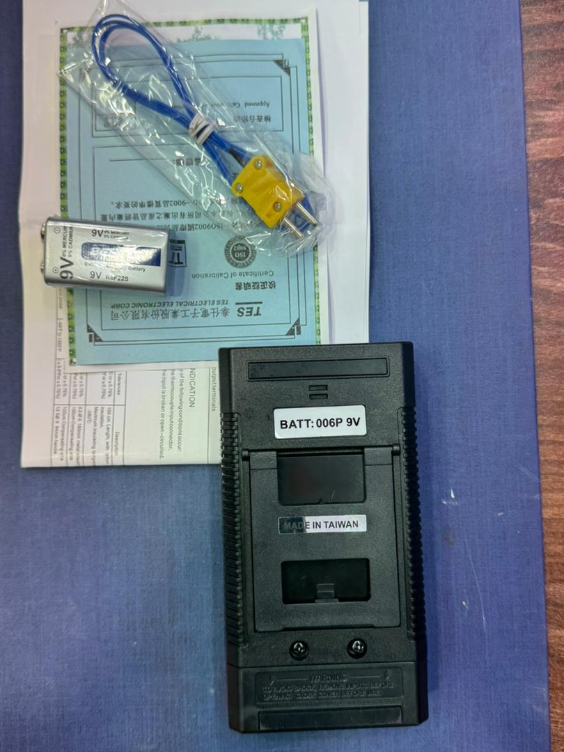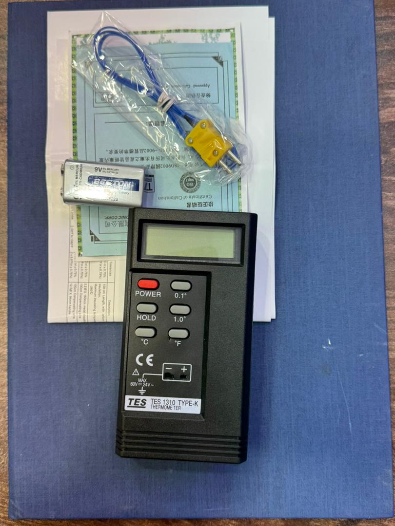 - **دماسنج دیجیتال TES-1310**: دستگاه اصلی با رابط دیجیتالی برای خواندن و تعامل با دادههای دما.