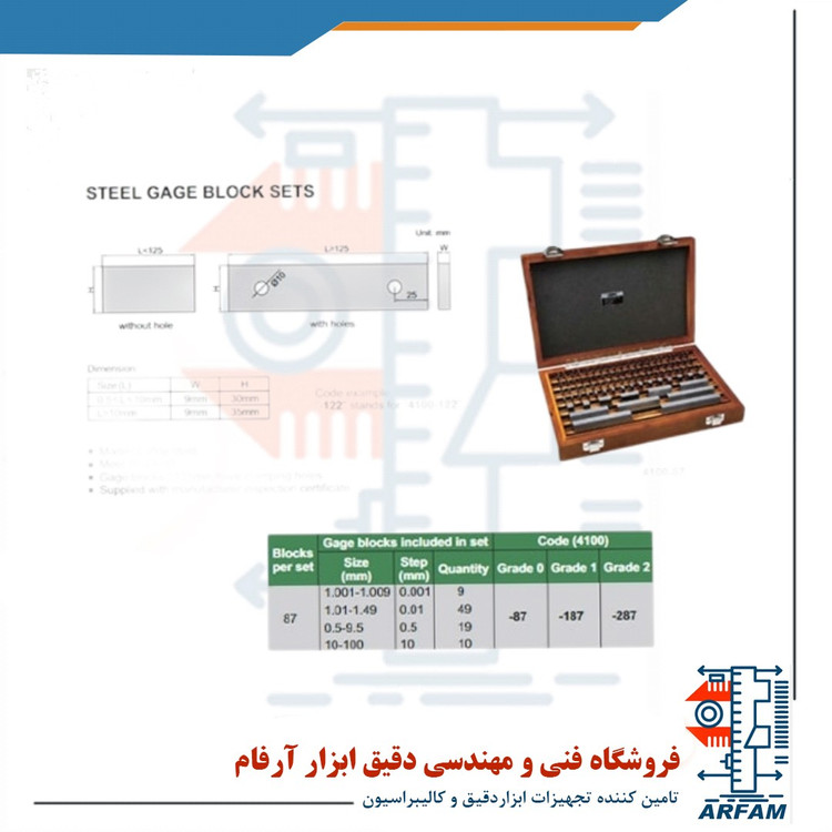 •گیج بلوک 87 عددی گرید 2 از سایز 1 تا 100