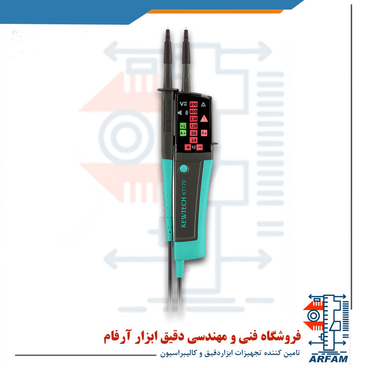 تستر ولتاژ KYORITSU KT170 ساخت کمپانی بزرگ و معروف کشور ژاپن دارای طراحی نوین و LED های بزرگ و روشن مطابق با آخرین استانداردهای IEC 61243 و IEC 61010 می باشد. این دتکتور ولتاژ جریان دارای بدنه مستحکم و قوی است و نیز استفاده از ان بسیار آسان و راحت و خوش دست میباشد. این دستگاه قیمتی بسیار مناسب نسبت به مدل های مشابه دارد.