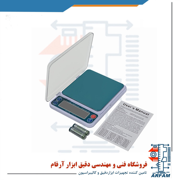 در معرفی ویژگی های ظاهری این مقیاس میتوان به درپوش تلقی آن اشاره کرد که به صورت کتابی باز و بسته میشود و از آسیب رسیدن به پنل نمایشگر، صفحه توزین و دکمه ها جلوگیری میکند. در قسمت جلوی دستگاه نمایشگر lcd قابل رویت است که اطلاعات وزن را به روشنی در اختیار شما میگذارد. همانطور که در تصویر مشخص است کلیدهای کاربردی شامل on,off , tare, pcs , mode در دو طرف نمایشگر قرار گرفته است تا به راحتی بتوانید به حالت های مختلف رفته و تنظیمات دستگاه را تغییر دهید.