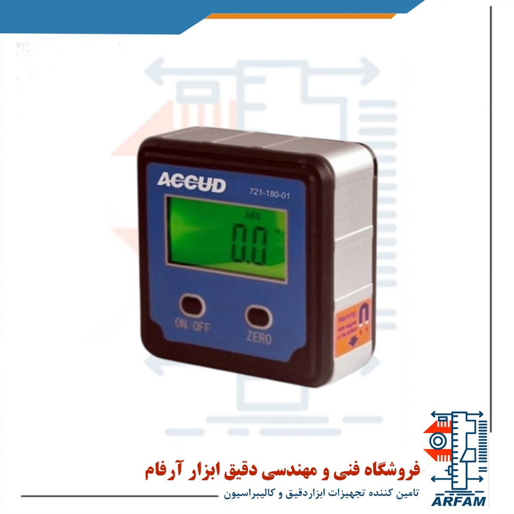 زاویه سنج وشیب سنج دیجیتال مگنتی مدل 721-180-01 ساخته شده در شرکت Accud ( آکاد ) از دسته زاویه سنج وشیب سنج های با کیفیت و دقیق موجود در بازار می باشد. زاویه سنج وشیب سنج ها ی صنعتی معمولا در کارگاه ها و کارخانه های صنایع مختلف جهت تنظیم و نصب دستگاه های و تجهیزات به کار می رود. زاویه سنج وشیب سنج دیجیتال آکاد با پایه ی مگنتی که به نام های شیب سنج دیجیتال ، زاویه سنج مگنتی و ... معروف است به سطح مورد نظر ( از جنس آهن ) می چسبد و امکان اندازه گیری دقیق میزان شیب صافی سطح مورد نظر را فراهم می آورد. ویژگی خاصی که در این زاویه سنج وشیب سنج وجود دارد قابلیت استفاده در 4 جهت می باشد. محدوده ی اندازه گیری این شیب سنج 0 تا 360 درجه ( 90 * 4 ) است. این ابزار دارای خطای اندازه گیری ±0.1 درجه در جهت افقی و عمودی و ±0.2 درجه در جهت های دیگر و دقت 0.1 درجه در بازه ی 1 متری است. همچنین حافظه ی نامحدود در جهت افقی ، دکمه پاور ، صفر و امکان خاموش شدن خودکار از دیگر نکات با اهمیت در این زاویه سنج وشیب سنج می باشد.