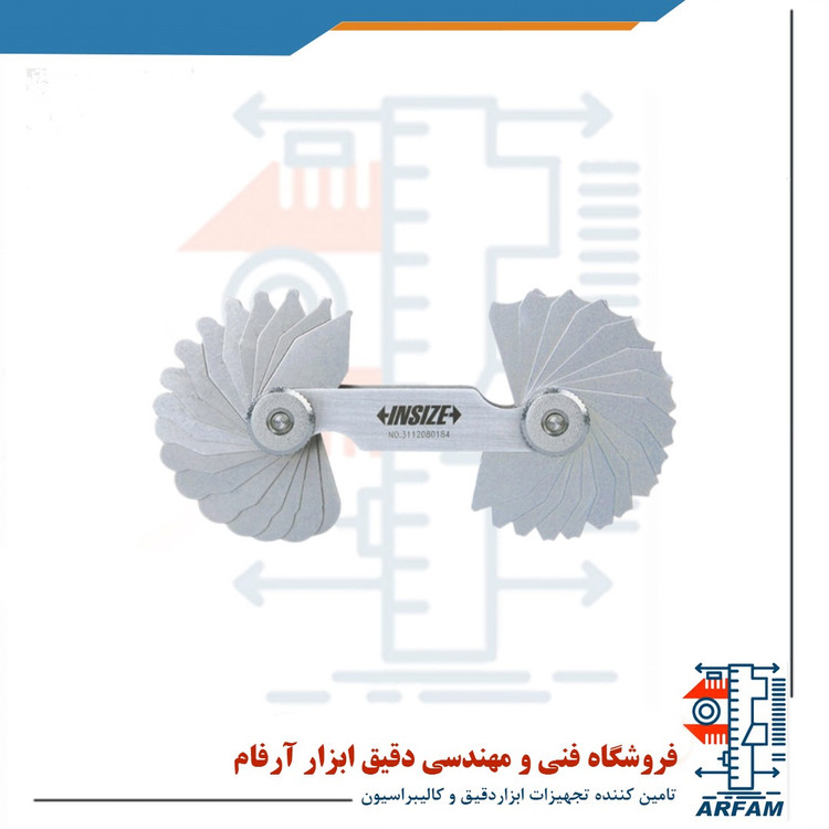 شرکت اینسایز که یکی از پیشتازان تولید ابزارهای دقیق بوده، به ساخت شابلون اندازه گیری هم می پردازد و سری شعاع سنج ورقه ای و فلزی 4801 را از چند سال پیش به دنیای صنعت معرفی کرده است. در مدل ست شعاع سنج 17-4801 کمپانی اینسایز تعداد 34 برگ کوچک فلزی از جنس مرغوب با ترکیب 17+17 عددی وجود دارد که وجه داخلی و بیرونی شعاع و آرک را از سایز 1 تا میلی متر اندازه گیری می کند. 17 عدد از برگه ها برای محاسبه سطح بیرونی قطعه منحنی و 17 عدد برای اندازه گیری داخل انحنا و کمان وجود دارد.
