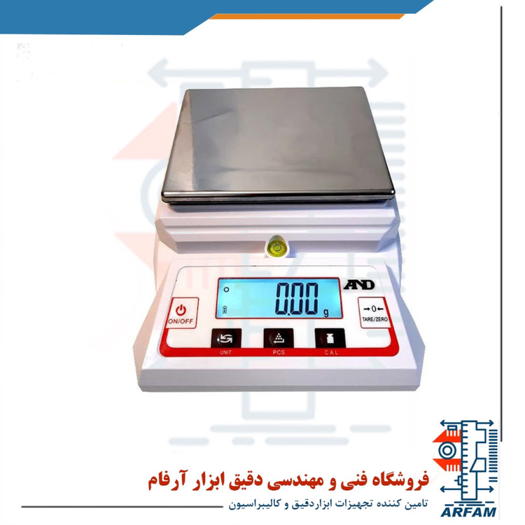 کالیبراسیون در این دستگاه عملی دستی ست که پس از هر بار جابجایی نیاز به تنظیم دوباره خواهد داشت که این عمل نیز با استفاده از یک سنگ کالیبره 2 کیلوگرمی که همراه دستگاه ارائه می گردد، انجام خواهد شد. نمایش اطلاعات توزین در صفحه ی نمایشگر ال سی دی بر روی ترازوی AND به صورت شفاف و واضح خواهد بود. منبع برق و باتری، تأمین انرژی این دستگاه را بر عهده دارند که در صورت نبودن جریان برق با باتری نیز قادر به انجام عمل توزین است.