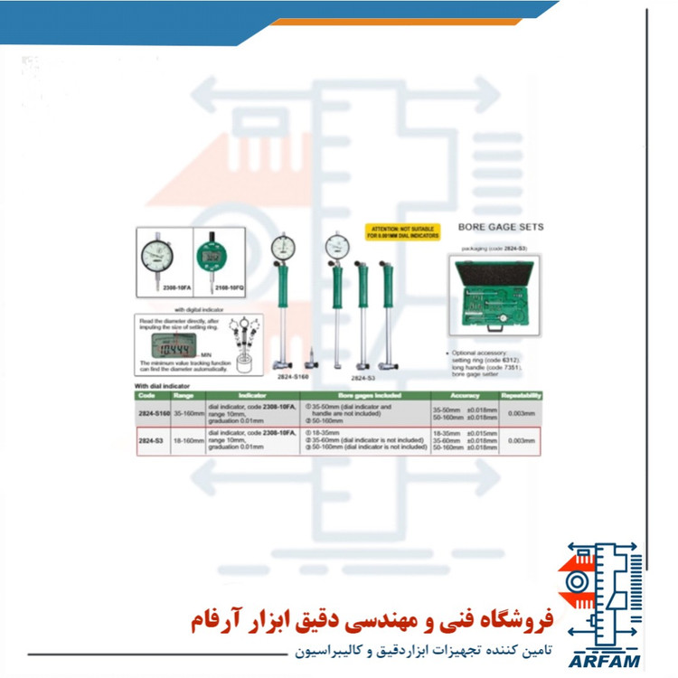 معرفی و مشخصات ست بور گیج اینسایز 160 - 18 میلی متر مدل S3-2824