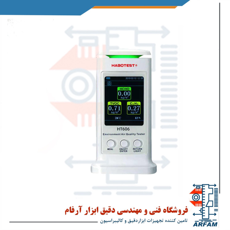 دستگاه HT606، یک ردیاب کیفیت هوا با نمایش به صورت آنالوگ و دیجیتال است که قادراست مجموع ترکیبات آلی (TVOC) و فرمالدئید HCHO))، بنزن ، دما ، رطوبت را اندازه گیری کند. این دستگاه مناسب برای بهسازی کیفیت هوا منزل و آشکارساز آلودگی هوا می باشد. ابعاد دستگاه به صورت 146 * 80 * 68 میلی متر میباشد. وزن دستگاه حدود 207 گرم است و دارای 12 ماه گارانتی است. همچنین این دستگاه دارای منبع تغذیه از نوع DC و به میزان 5 ولت می باشد.