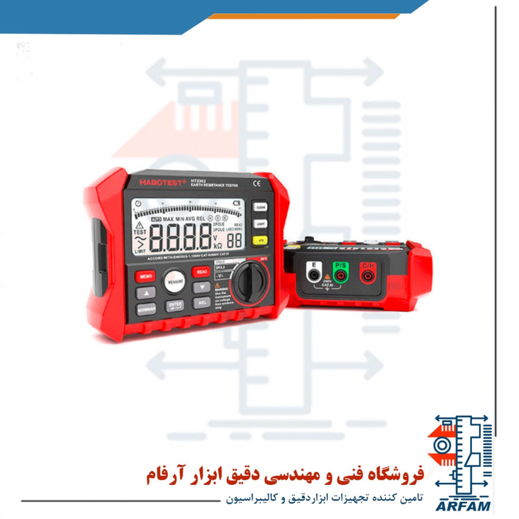 ارت سنج هابوتست مدل HT2302 برای آزمایش مقاومت زمین بوسیله سیم های منبع تغذیه ، سیم های توزیع داخل یک اتاق ، تجهیزات الکتریکی یا لوازم خانگی قابل استفاده است که می تواند در دو حالت دو قطبی یا سه قطبی اندازه گیری انجام شود. همچنین می توان از آن برای اندازه گیری ولتاژ زمین استفاده کرد. این دستگاه دارای صفحه نمایش بزرگ دیجیتال و نور پس زمینه اعمال شده بر روی کنتور است که کاربران را برای خواندن اطلاعات روی ان اسوده می کند. علاوه بر این ، کنتور قادر است 100 گروه از داده های اندازه گیری را ذخیره کند ، که حتی در صورت قطع برق از بین نمی رود تا کاربر به راحتی از داده های تاریخی استفاده کند.