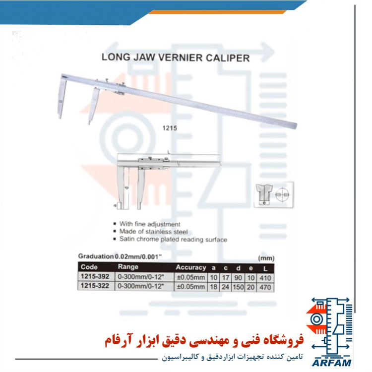 •دامنه اندازه گیری 300 میلی متر با فک بلند 15 سانتی متر
