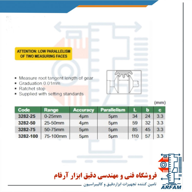 معرفی و مشخصات میکرومتر خارج سنج اینسایز چرخ دنده مدل 3282-25