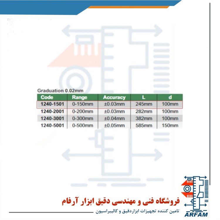 •دامنه اندازه گیری برابر 150 - 0 میلی متر
