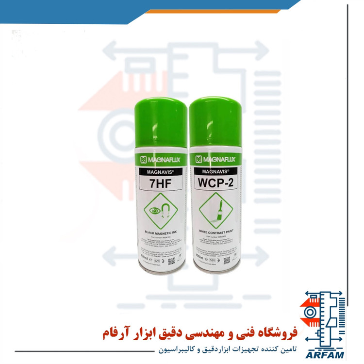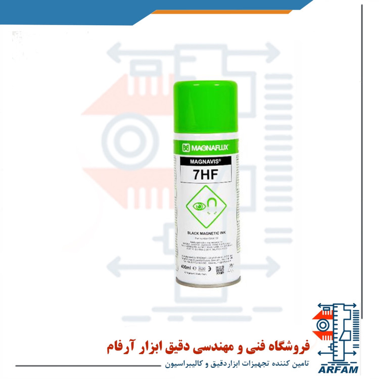 اسپری ذرات مغناطیسی با پایه نفتی برای ترک یابی به روش MT غیر فلورسنت (مرئی) مورد استفاده قرار می گیرد. اسپری جوهر مشکی7HF به دلیل ساختار فشرده ذرات مغناطیسی، نشانه های واضح و قوی از ترک و عیوب را فراهم می کند.اسپری تست MT برای تست میدان، بازرسی های نقطه ای و مکان هایی که پردازش توده ای غیر عملی است مناسب است زیرا الگوی گسترده اسپری برای پوشش دادن مناطق بزرگ برای بازرسی سریع تر در حین بازرسی لوله و سازه های بزرگ آسان می کند. اسپری ترک یاب 7HF اغلب با اسپری کنتراست سفید WCP-2 برای بهبود کنتراست و افزایش حساسیت بازرسی استفاده می شود.