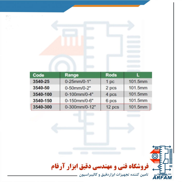•دقت میله برابر (2/75+L)± µm در این فرمول L برابر طول میله