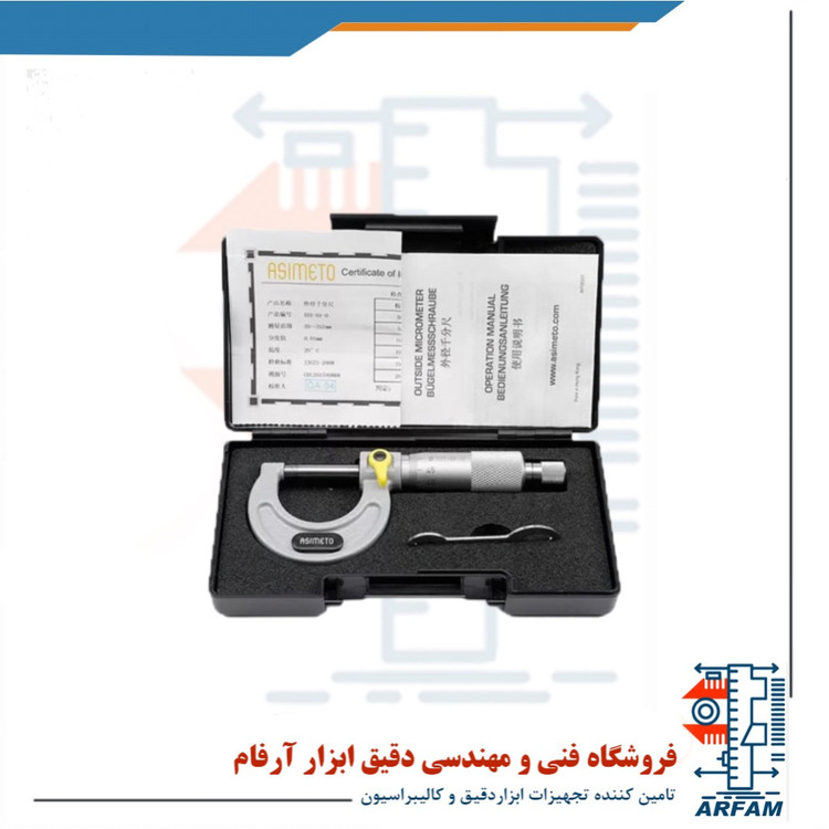معرفی و مشخصات میکرومتر خارج سنج آسیمتو 25-0 میلی متر مدل 0-01-101