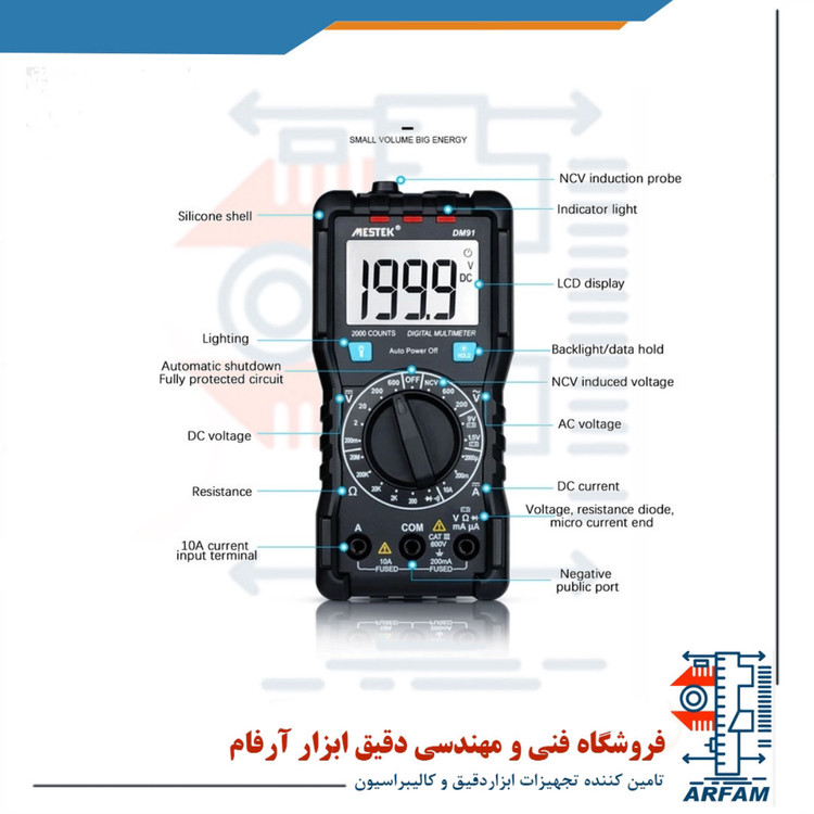 مولتی متر دیجیتال مستک مدل DM91 یکی از کاربردی ترین تجهیزات بازرسی الکتریکی و برق است که از آن برای تشخیص عیوب و یا تعمیر تجهیزات الکتریکی استفاده می شود.