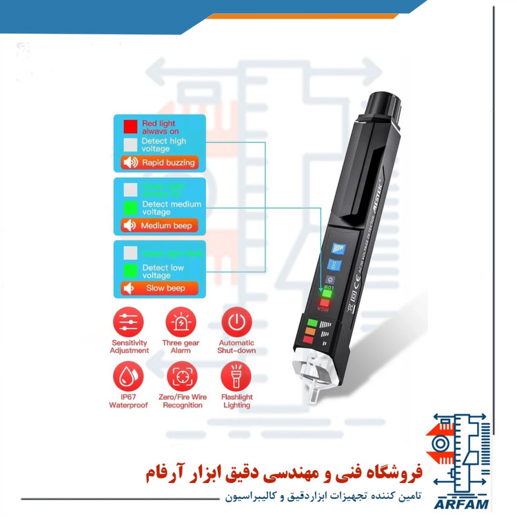 شرکت شنزن مستک تولز یکی برترین تولید کنندگاه ابزار آلات اندازه گیری دقیق با 15 سال سابقه در کشور چین میباشد . محصولات این شرکت شامل محصولات اندازه گیری الکترونیک، صنعت صدا و نور، سنجش حرارت، اپتیک و فاصله سنج های لیزی و هچنین دوربین های تصویری میباشد. تستر ولتاژ مستک مدل AC20, یک تستر غیر تماسی و قلمی شکل است. که می تواند ولتاژ را از 12V تا 1000V ولت و از 48V تا 1000V اندازه گیری کند. این محصول دارای هشدار صوتی و بصری می باشد زمانی که چراغ قرمز یا سبز روشن می شود, نشانگر وجود سیگنال قوی, متوسط و ضعیف می باشد. همچنین دارای چراغ قوه LED برای استفاده آسان در شب یا در محیط های تاریک می باشد.