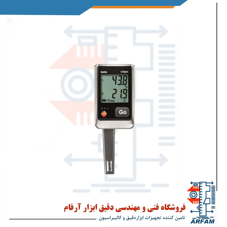 دیتالاگر دما و رطوبت با ذخیره 1 میلیون داده برند تستو مدل TESTO 175H1 دارای 2 کانال دما و رطوبت می باشد که سنسور رطوبت آن خارجی بوده و از جنس سنسور خازنی (NTC) می باشد که موجب بالاتر بودن حساسیت آن شده است. این دستگاه از 3 باتری 1.5 ولت AAA با طول عمر 3 سال تغدیه می کند و دارای یک صفحه نمایش با کیفیت و بزرگ می باشد که به منظور تسهیل کار در مکان های مختلف و همچنین کاهش خطای کاربر تعبیه شده است. این دستگاه به قابلیت اتصال به کامپیوتر از طریق USB مجهز شده است که موجب می شود تحلیل و بررسی داده ها بسیار سریع تر و راحت تر انجام پذیرد و خطا های محاسباتی را نیز کاهش می دهد. هر دستگاهی پس از گذر مدت زمان خاصی در اثر شرایط محیطی و یا استفاده نادرست از حالت نرمال خارج می شود و نیاز به کالیبراسیون دارد، در نتیجه این دستگاه با دارا بودن قابلیت کالیبراسیون از دستگاه های مشابه خود پیشی گرفته است. از دیگر قابلیت های این دستگاه می توان به نمایش کاهش باتری اشاره کرد که زمان مناسب برای تعویض باتری را مشخص می کند و از آن جایی که باتری ضعیف به دستگاه آسیب زده و موجب افزایش خطا در اندازه گیری می شود، این قابلیت حایز اهمیت است.