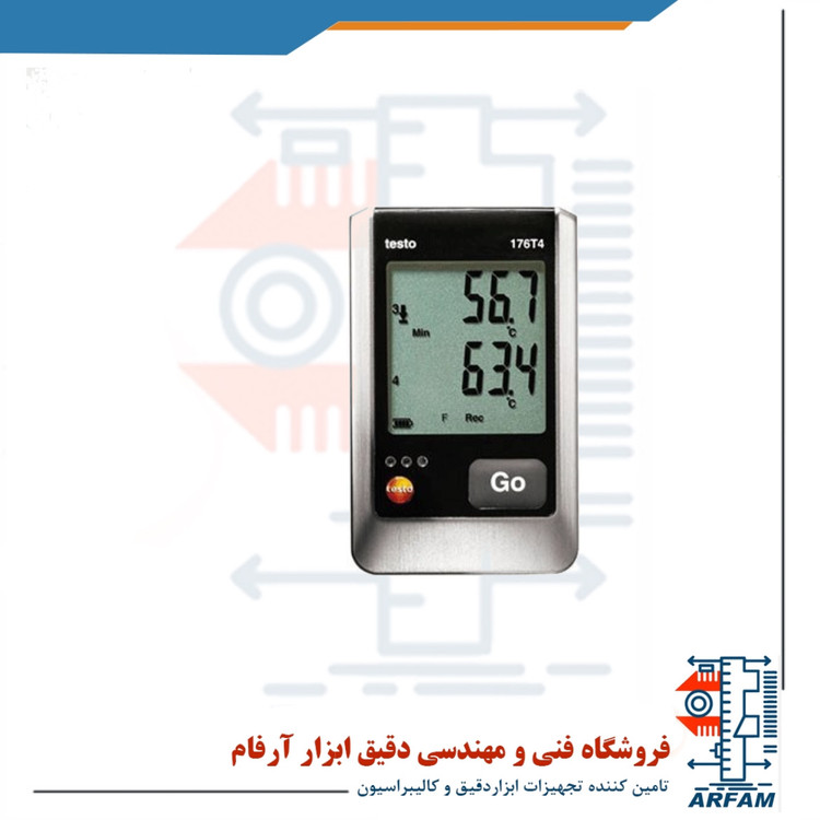 دیتا لاگر دما 4 کاناله TESTO 176 T4 شرکت تستو یک ابزار دقیق، حساس و بسیار مناسب برای اندازه گیری و ثبت مداوم دما در 4 مکان متفاوت به طور همزمان می باشد. انواع ترموکوپل های نوع T، K و J قابلیت اتصال به این دستگاه را دارند که با آن ها می توان با دو واحد سانتیگراد و فارنهایت، از 200- درجه تا 1000درجه سانتیگراد را اندازه گیری و ضبط کرد.