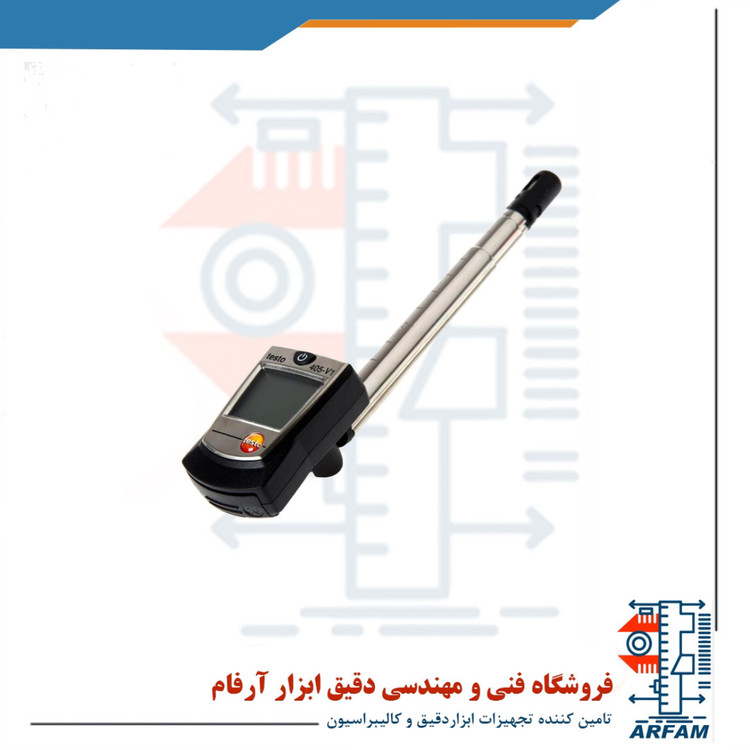 بادسنج حرارتی و آنمومتر با تلسکوپ 300 میلی متری برند تستو مدل TESTO 405 ابزاری کاربردی جهت نصب و راه اندازی سیستم تهویه هوا، تعمیر، تشخیص و بهینه سازی سیستم تهویه، سرویس و تجزیه و تحلیل آزمایش، تجزیه و تحلیل باد و دمای محیط اتاق های دیگ بخار، نگهداری نیروگاه، تاسیسات آزمایش آیرودینامیکی خودرو، پتروشیمی، جهت یابی، صنعت ورزش و معادن است. این دستگاه دارای 3 باتری میکرو AAA با طول عمر 20 ساعت به عنوان منبع تغذیه و صفحه نمایش LCDبزرگ با نور پس زمینه صفحه نمایش می باشد که اندازه گیری دما را در هر محیطی با هر میزان نوری تسهیل و تسریع می بخشد و از خطا های اندازه گیری می کاهد. هر دستگاهی پس از گذر مدت زمان خاصی در اثر شرایط محیطی و یا استفاده نادرست از حالت نرمال خارج می شود و نیاز به کالیبراسیون دارد، در نتیجه این دستگاه با دارا بودن قابلیت کالیبراسیون از دستگاه های مشابه خود پیشی گرفته است.