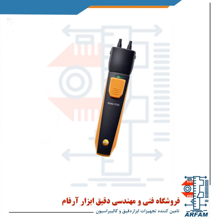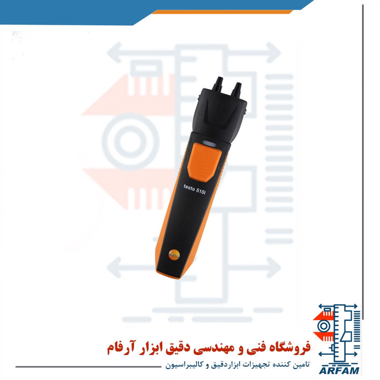 دستگاه هوشمند و بی سیم سنجش فشار تفاضلی برند تستو مدل TESTO 510I یک پراب هوشمند برای اندازه گیری فشار دیفرانسیل بی سیم است که برای اندازه گیری فشار کم با دقت بسیار بالا استفاده می شود. این دستگاه همچنین برای اندازه گیری فشار های گوناگون، فشار استاتیک و افت فشار در ساختمان ها یا سیستم های تهویه مناسب است و برای اندازه گیری افت فشار روی سیم پیچ ها و فیلترها یا در مجاری و سیستم های مختلف استفاده می شود. کاربران می توانند اندازه گیری ها را با استفاده از نرم افزار مربوط به این دستگاه (TESTO SMART PROBES APP) که بر روی دستگاه های هوشمند با سیستم عامل های اندروید یا اپل نصب می شود، مشاهده نمایند. هنگامی که این دستگاه با لوله های پیتوت استفاده می شود می تواند برای تعیین سرعت هوا و میزان جریان استفاده شود. رنج اندازه گیری این دستگاه برابر فشار از 150- تا 150 هکتو پاسکال یا از 60- تا 60 inWC می باشد که از دقت بسیار بالایی برخوردار می باشد.