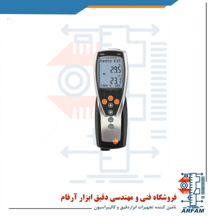 مولتی پارامتر دما و رطوبت محیطی برند تستو مدل TESTO 635-1 ابزاری ایمن، قابل اعتماد و قابل حمل می باشد که به راحتی می تواند در هر مکانی مورد استفاده قرار گیرد. این دستگاه از 2 پراب کلاسیک و 3 پراب بی سیم پشتیبانی می نماید و این امر موجب جلب توجه کاربران زیادی شده است. این دستگاه دارای باتری منگنز قلیایی AA با طول عمر 200 ساعت به عنوان منبع تغذیه و صفحه نمایش LCD با نور پس زمینه صفحه نمایش می باشد که اندازه گیری دما را در هر محیطی با هر میزان نوری تسهیل و تسریع می بخشد و از خطا های اندازه گیری می کاهد. هر دستگاهی پس از گذر مدت زمان خاصی در اثر شرایط محیطی و یا استفاده نادرست از حالت نرمال خارج می شود و نیاز به کالیبراسیون دارد، در نتیجه این دستگاه با دارا بودن قابلیت کالیبراسیون از دستگاه های مشابه خود پیشی گرفته است.