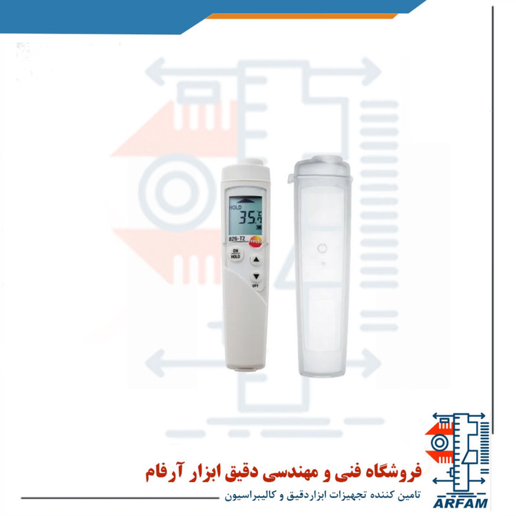 دماسنج لیزری و غیر تماسی 300 درجه برند تستو مدل TESTO 826-T2 به پردازنده جدید مجهز شده است که موجب وضوح بالاتر و نتایج دقیق تر اندازه گیری می شود، به گونه ای که قادر به ثبت دما با دقت 0.1 درجه سانتی گراد نیز باشد. نمایش مقدار حداقل و حداکثر در صفحه نمایش محدوده آخرین اندازه گیری را نشان می دهد و کاربر می تواند دمای کالا را با اطمینان و ایمنی، اندازه گیری و کنترل کند. این دستگاه مطابق با قوانین و استاندارد های دقیق کالیبره شده است و موجب حفظ دمای سرد انبار های مواد غذایی و همچنین در ماشین های حمل و نقل می شود. دماسنج 826-T2 ضد آب بوده و به دلیل پوشش مقاومتی که دارد قابل شستشو در ماشین های ظرفشویی می باشد. این دستگاه دارای پارت نامبر 05638282 بوده و قادر به اندازه گیری دما از 50- تا 300 درجه سانتی گراد می باشد.به منظور اندازه گیری دمای سطحی مخصوصا در صنایع مواد غذایی طراحی و ساخته شده است. از مشخصات فنی و مزایای کاربردی این دستگاه می توان به ضد آب، قابل شستشو در ماشین ظرفشویی، ثابت نگهداشتن داده ها، نمایش میزان شارژ باتری، نمایش مقدار ماکزیمم / مینیمم، لیزر نقطه ای با طول موج 8 تا 14 میکرو متر، سرعت اندازه گیری 0.5 ثانیه، اندازه گیری سریع و دقیق و زنگ هشدار اشاره کرد.