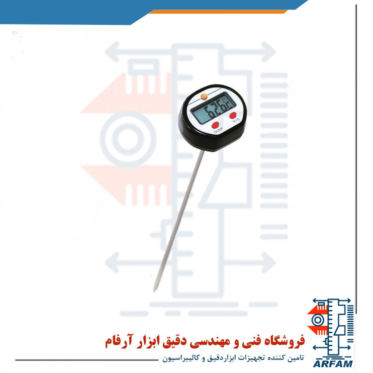مینی دماسنج نفوذی با پراب بلند برند تستو مدل TESTO 05601111 یک دماسنج ایمن، کوچک و با کاربری آسان می باشد که در هر جیبی به راحتی جای می گیرد و همیشه و در هر مکانی آماده استفاده می باشند. این دستگاه بسیار پرکاربرد بوده و در بسیاری از مشاغل و صنایع مانند بخش مواد غذایی، صنعت داروسازی، تجارت، گرمایشی و تهویه مورد توجه کاربران قرار گرفته است. از مزیت های بزرگ این دماسنج های کوچک قابلیت اندازه گیری دما در هوا، مواد نرم، مواد پودری و مایعات می باشد. این دستگاه قابلیت اندازه گیری دما از 50- تا 250 درجه سانتی گراد را داراست و از دقت بالایی برخوردار می باشد.یک وسیله اندازه گیری ایمن، قابل اطمینان و بسیار سبک بوده که قابل استفاده در هر مکانی بوده و از دقت بسیار بالایی نیز برخوردار می باشد. از مشخصات فنی و کاربردی این دستگاه می توان به کاربری ساده، با دوام، کاور محافظ گیره دار برای پراب، صفحه نمایش باکیفیت، نمایش میزان شارژ باتری، تعویض راحت باتری و انتخاب واحد اندازه گیری درجه سانتی گراد یا درجه فارنهایت اشاره کرد و در دمای 10- تا 50 درجه سانتی گراد به راحتی قابل استفاده می باشد.