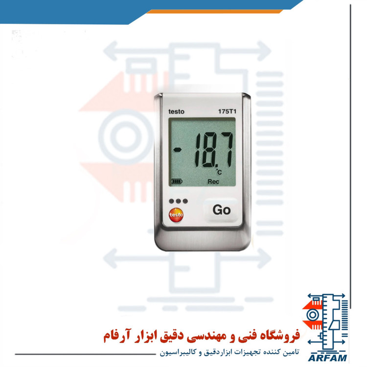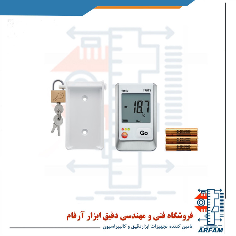 ست کامل ترموگراف دما مخصوص سردخانه و انبار برند تستو مدل TESTO 175T1 ابزاری کاربردی و حرفه ای مخصوص کار افراد آماتور و حرفه ای می باشد که به منظور اندازه گیری دمای محیط به صورت مکرر ساخته و عرضه بازار شده است. منبع تغذیه این دستگاه 3 باتری 1.5 ولت قلیایی یا لیتیومی AAA با طول عمر 3 سال است که در صورت کاهش آن، نماد باتری در صفحه نمایش ظاهر می شود که به منظور هشدار به کاربر جهت تعویض باتری ها می باشد زیرا باتری ضعیف به دستگاه آسیب زده و موجب افزایش خطا در اندازه گیری می شود. صفحه نمایش این دستگاه دارای سایز بزرگ و کیفیت بالا می باشد که موجب تسهیل و تسریع کار در مکان های تاریک شده و میزان خطای کاربر را کاهش می دهد. هر دستگاهی پس از گذر مدت زمان خاصی در اثر شرایط محیطی و یا استفاده نادرست از حالت نرمال خارج می شود و نیاز به کالیبراسیون دارد، در نتیجه این دستگاه با دارا بودن قابلیت کالیبراسیون از دستگاه های مشابه خود پیشی گرفته است. از دیگر مزایای این دستگاه اتصال آن به کامپیوتر از طریق USB می باشد که موجب می شود تحلیل و بررسی داده ها بسیار سریع تر و راحت تر انجام پذیرد و خطا های محاسباتی را نیز کاهش می دهد.