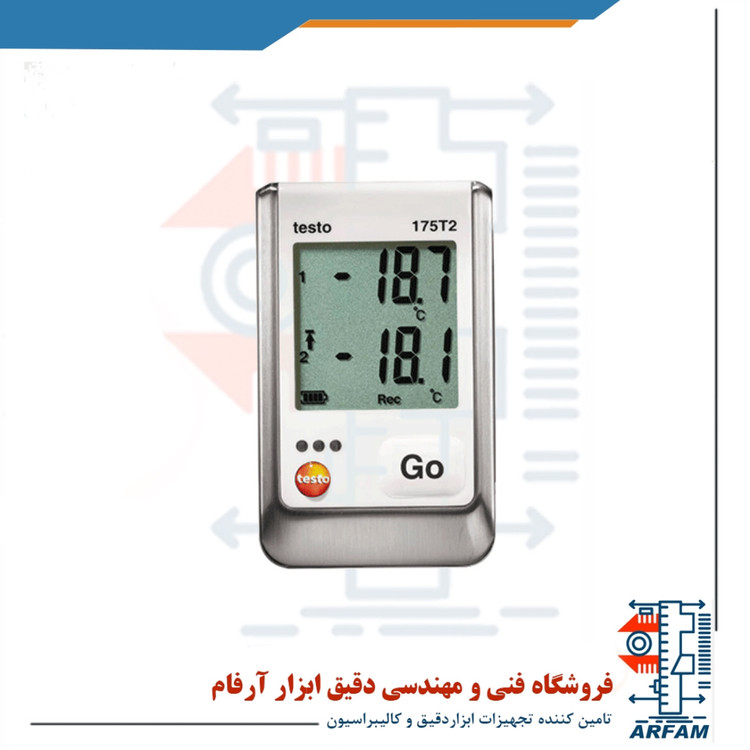 دیتالاگر دمای 2 کاناله مخصوص سردخانه و انبار برند تستو مدل TESTO 175T2 از 2 کانال مجزا تشکیل شده است که کانال 1 آن برای اندازه گیری دمای محیط و کانال 2 آن برای اندازه گیری دمای هسته ای محصولات یخچالی کاربرد دارد. منبع تغذیه این دستگاه 3 باتری 1.5 ولت قلیایی یا لیتیومی AAA با طول عمر 3 سال است که در صورت کاهش آن، نماد باتری در صفحه نمایش ظاهر می شود که به منظور هشدار به کاربر جهت تعویض باتری ها می باشد زیرا باتری ضعیف به دستگاه آسیب زده و موجب افزایش خطا در اندازه گیری می شود. صفحه نمایش این دستگاه دارای سایز بزرگ و کیفیت بالا می باشد که موجب تسهیل و تسریع کار در مکان های تاریک شده و میزان خطای کاربر را کاهش می دهد. از دیگر مزایای این دستگاه اتصال آن به کامپیوتر از طریق USB می باشد که موجب می شود تحلیل و بررسی داده ها بسیار سریع تر و راحت تر انجام پذیرد و خطا های محاسباتی را نیز کاهش می دهد. هر دستگاهی پس از گذر مدت زمان خاصی در اثر شرایط محیطی و یا استفاده نادرست از حالت نرمال خارج می شود و نیاز به کالیبراسیون دارد، در نتیجه این دستگاه با دارا بودن قابلیت کالیبراسیون از دستگاه های مشابه خود پیشی گرفته است.
