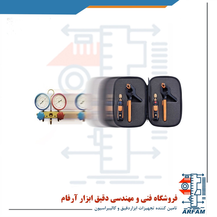 کیت پروب های بی سیم یخچال و پمپ های حرارتی برند تستو مدل TESTO 0563000241 دارای 3 نوع پراب موثر در سیستم های برودتی و پمپ های حرارتی می باشد به طوری که ترمومتر کلمپی مدل TESTO 115I دما را از 40- تا 150 درجه سانتی گراد با دقت ±1.3°C و فشارسنج مدل TESTO 549I فشار را از 1- تا 60 بار با دقت 0.5% و دما و رطوبت سنج مدل TESTO 605I دما را از 20- تا 60 درجه سانتی گراد با دقت ±0.8°C و رطوبت نسبی را از 0 تا 100 درصد RH با دقت ±3.0%RH اندازه گیری می نماید.