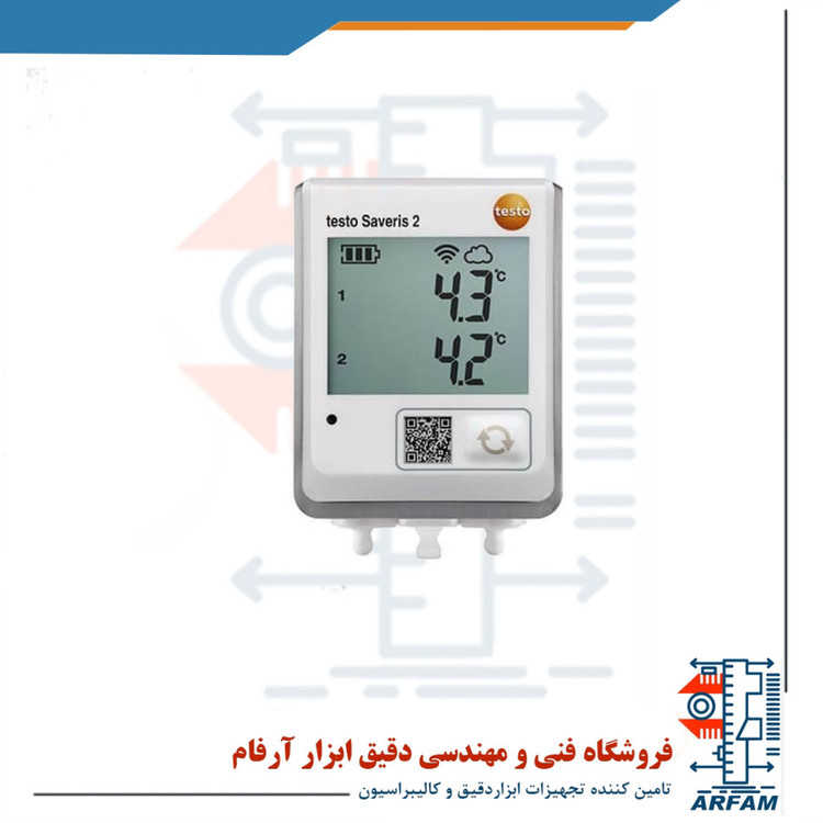 دیتالاگر بی سیم دما 150 درجه برند تستو مدل TESTO SAVERIS 2-T2 یک راه حل مدرن برای نظارت بر مقادیر و بررسی دما در انبارها و اتاق های کار می باشد. نصب این سیستم بسیار ساده است و کاربر می تواند به راحتی آن را جابه جا کرده و یا با خود حمل کند. این دیتالاگر WiFi به روش قابل اعتمادی داده های اندازه گیری شده دما را در فواصل زمانی قابل تنظیم ثبت می کند و مقادیر اندازه گیری را مستقیماً از طریق شبکه بی سیم به ابر تستو (Testo Cloud) منتقل می کند. داده های ذخیره شده را می توان در هر زمان و هر مکان با استفاده از تلفن هوشمند، تبلت یا رایانه شخصی با استفاده در اینترنت باز خوانی کرده و مورد بررسی، تجزیه و تحلیل قرار داد. داده های غیر مجاز و نامناسب که خارج از محدوده می باشند، بلافاصله از طریق ایمیل یا به صورت اختیاری از طریق پیام کوتاه گزارش می شوند. این قابلیت باعث می شود فرآیندهای حیاتی همیشه و حتی در زمانی که کاربر در محل حضور نداشته باشد، تحت کنترل قرار بگیرند. طول عمر طولانی باتری به کاربر این اطمینان را می دهد که این سیستم به ندرت نیاز به سرویس دارد. این دستگاه قادر به اندازه گیری دما از 50- تا 150 درجه سانتی گراد می باشد که از دقت بالایی برخوردار است.