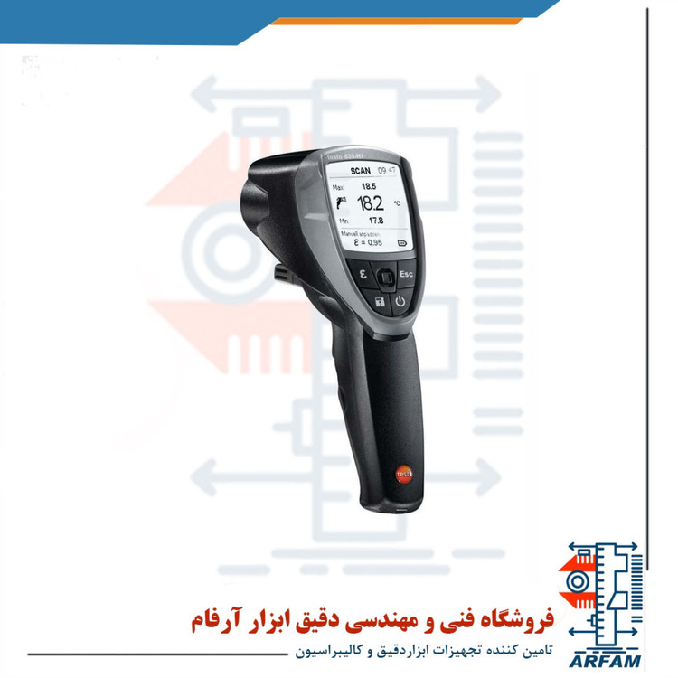 از دقت بسیار بالایی برخوردار بوده و توانسته جایگاه مناسبی را در میان کاربران از آن خود کند که علاوه بر اندازه گیری دما با دو حالت دماسنجی IR و TC ، قابلیت اندازه گیری رطوبت و نقطه شبنم را نیز دارد. این دستگاه 3 باتری مدل AA با طول عمر 25 ساعت بدون نور پس زمینه و لیزر و 10 ساعت بدون نور پس زمینه تغذیه می کند. صفحه نمایش این دستگاه دارای نور پس زمینه می باشد که به منظور کار در محیط های کم نور و یا تاریک تعبیه شده است و موجب راحتی کار و کاهش خطا های کاربر می شود. زنگ هشدار طراحی شده در این دستگاه با عبور مقادیر اندازه گیری از محدوده های تعیین شده روشن می شود و با جلب توجه کاربر به خطرات احتمالی، موجب کاهش صدمات و خسارات می شود. از دیگر قابلیت های این دستگاه می توان به نمایش کاهش باتری اشاره کرد که زمان مناسب برای تعویض باتری را مشخص می کند و از آن جایی که باتری ضعیف به دستگاه آسیب زده و موجب افزایش خطا در اندازه گیری می شود، این قابلیت حایز اهمیت است. در صورت عدم استفاده از دستگاه نور پس زمینه صفحه نمایش پس از گذشت 30 ثانیه و خود دستگاه پس از گذشت 120 ثانیه به طور خودکار خاموش می شود.