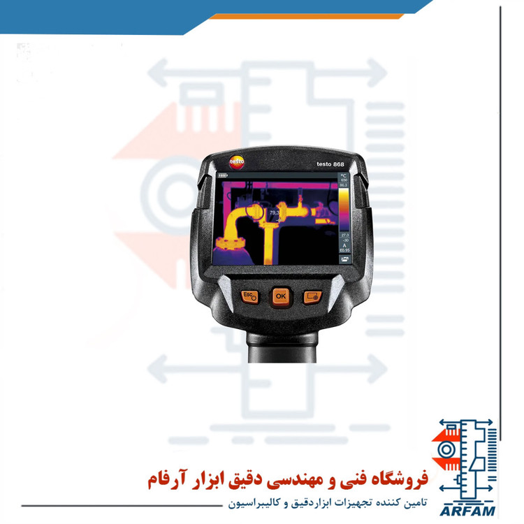 یک ابزار ایده آل در دنیای گرماسنجی است که دارای بهترین کیفیت تصویر در میان دستگاه های مشابه خود است. این دستگاه بسیار مقاوم بوده و برای استفاده روزانه موثر می باشد و همچنین دارای عملکرد های مختلفی برای بهتر کردن تصویر گرمایی نیز می باشد. این دستگاه دارای قابلیت اتصال به تلفن همراه و یا لپ تاپ می باشد و نمایشگر آن را به صفحه نمایش دوم خود تبدیل می نماید و در نتیجه کاربر قادر به کنترل و اندازه گیری از طریق نرم افزار می باشد و می تواند برای تهیه، ارسال و ذخیره آنلاین گزارشات بر روی سایت مورد استفاده قرار گیرد. این دستگاه یک ابزار دقیق برای تشخیص اختلاف دما می باشد که در بسیاری از مشاغل و صنایع از جمله شناسایی محل دقیق نشتی ها، تشخیص اتصالات با دمای بسیار بالا، بررسی گرفتگی لوله های بخار، تشخیص دقیق پل های حرارتی، نصب، تعمیر و نگهداری تجهیزات صنعتی، بررسی دمای ماشین آلات مختلف، بررسی وضعیت عایق ها و لوله ها، تشخیص سلامت لوله، صنایع خودرو سازی و کارخانه ها مورد توجه زیاد کاربران قرار گرفته است. دوربین ترموویژن تستو 868 توانایی اندازه گیری دما در دو رنج اندازه گیری از 30- تا 100 درجه سانتی گراد و از 0 تا 650 درجه سانتی گراد با دقت قابل توجهی می باشد.