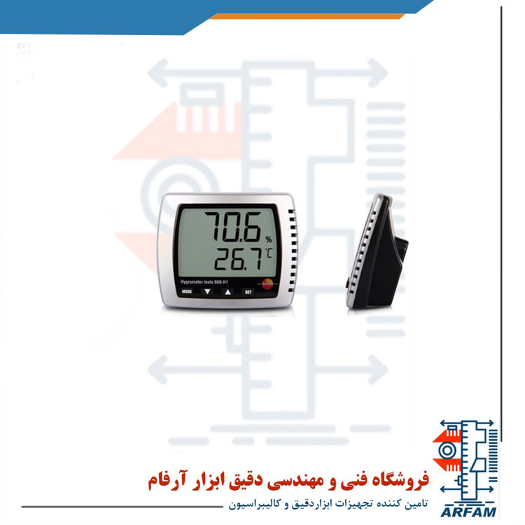هیگرومتر و دماسنج محیطی برند تستو مدل TESTO 608-H1 ابزاری ایمن، سبک و قابل اطمینان برای اندازه گیری رطوبت، دما و نقطه شبنم به طور مداوم می باشد. صفحه نمایش این دستگاه بسیار بزرگ بوده و داده ها حتی در فاصله دور نیز به راحتی قابل خواندن هستند و قابل استفاده بر روی میز یا دیوار می باشد. به دلیل مجهز بودن این دستگاه به سنسور پایدار بلند مدت، نتایج اندازه گیری شده توسط آن حتی پس از سال ها قابل اعتماد بوده و از دقت بالایی برخوردار می باشد. این دستگاه توانسته جایگاه ویژه ای را میان کاربران بدست آورد و در بسیاری از مشاغل و مکان ها از جمله در باغ ها، انبار ها، موزه ها، آزمایشگاه ها و غیره کاربرد دارد. این دستگاه می تواند مقادیر دما از 0 تا 50 درجه سانتی گراد، دمای نقطه شبنم از 20- تا 50 درجه سانتی گراد و رطوبت نسبی از 10 تا 95 درصد RH را با دقت بسیار بالایی اندازه گیری نماید.