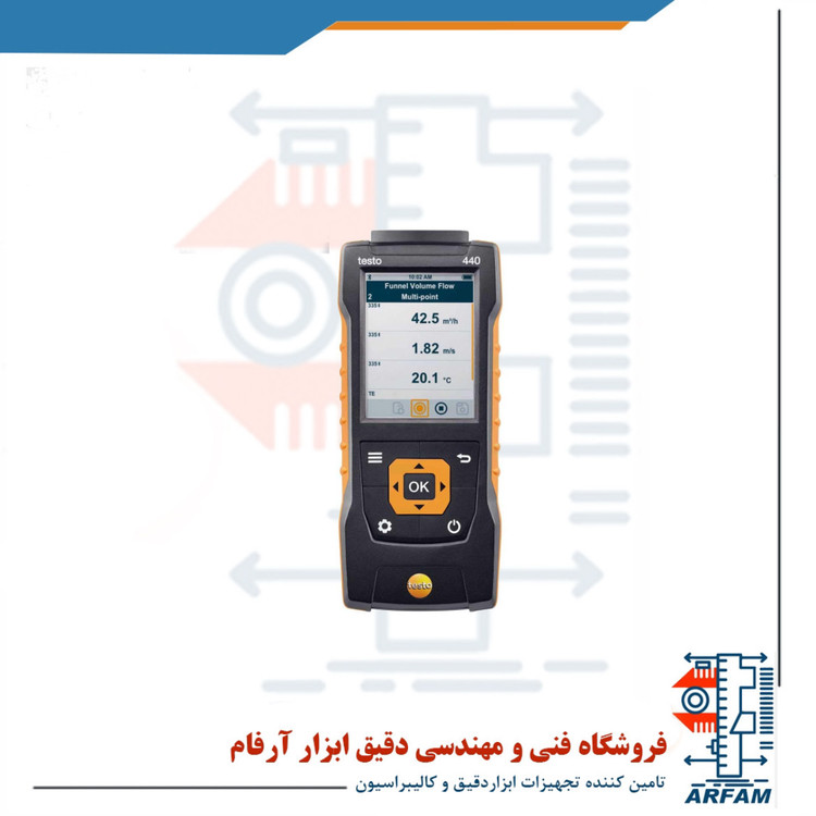 کیت سنجش هوا با پره 0.63 اینچ برند تستو مدل TESTO 440 0.63" VANE KIT قابلیت اندازه گیری پارامتر های دما به صورت غیر تماسی از 40- تا 302 درجه فارنهایت با دقت ±1.0°F و دما به صورت ترموکوپلی از 328- تا 2498 درجه فارنهایت با دقت ±(0.2+0.3%) را داراست. از مشخصات فنی و کاربردی این دستگاه می توان به منو های اندازه گیری کاملا واضح، قابلیت انصال پراب های بی سیم و با سیم، سایز کوچک، قابلیت اتصال USB، حافظه داخلی برای ذخیره 7500 داده، قابلیت پرینت مقادیر اندازه گیری شده، نمایش میزان باتری اشاره کرد.