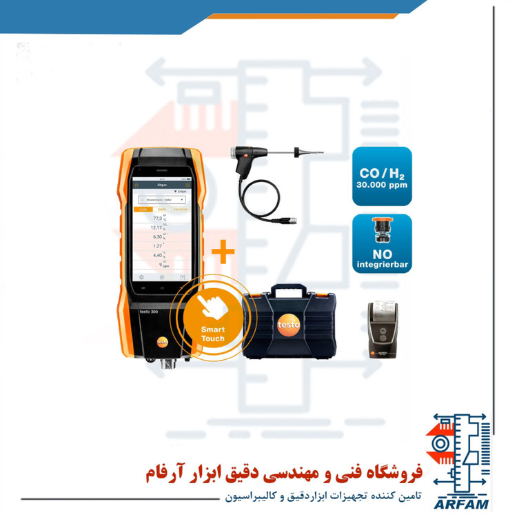 کیت آنالیزر گاز خروجی دودکش با دوام به همراه پرینتر برند تستو مدل TESTO 300 LONGLIFE KIT 2 WITH PRINTER توانایی اندازه گیری در رنج های O₂ از 0 تا 21 vol ، CO بدون جبران H₂ از 0 تا 4000 ppm ، CO با جبران H₂ از 0 تا 8000 ppm، CO بدون جبران H₂ و بدون رقیق سازی از 0 تا 15000 ppm ، CO بدون جبران H₂ و با رقیق سازی از 0 تا 30000 ppm، COlow با جبران H₂ از 0 تا 500 ppm ، NO از 0 تا 3000 ppm ، NOlow از 0 تا 300 ppm ، CO₂ با محاسبه دیجیتال از O₂ مطابق با رنج CO₂ ، تست کارایی (Eta) از 0 تا 120 درصد، اتلاف گاز دودکش از 0 تا 99.9 درصد، درفت(Draught) از 9.99- تا 40 هکتوپاسکال ، 4 پاسکال برای ابزار رقیق کننده از 50- تا 50 پاسکال Pa، فشار از 100- تا 200 هکتوپاسکال ، دما از 40- تا 1200 درجه سانتی گراد ، CO محیط با پراب داخلی و گاز دودکش از 0 تا 2000 ppm ، CO محیط با پراب خارجی از 0 تا 500 ppm را داراست.