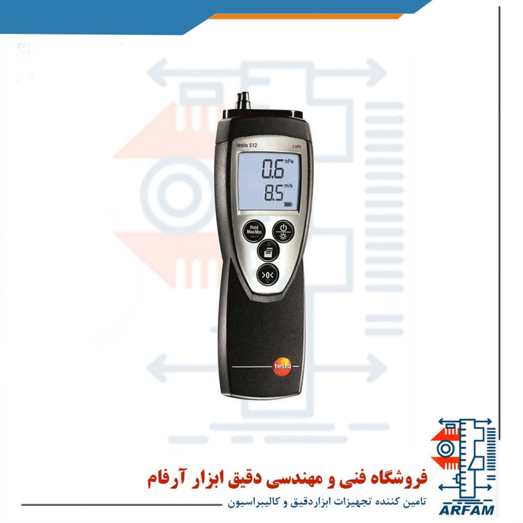 مجموعه 512 از سری فشارسنج های شرکت تستو ساخت کشور آلمان، ابزاری ایدهآل جهت استفاده در موارد بازرسی کمّی مقدار اختلاف فشار و سرعت جریان است. این فشارسنج قابلیت اندازهگیری فشار در گستره معینی ۲۰ هکتو پاسکال؛ 10 m/s الی 100 یا 1970 الی 19690 fpm را دارد. را دارد. میزان واحد سنجش فشار را میتوان به 8 مدل { KPa/Hpa/Pa/mm H2O / mmHg / Psi / inch H2O / inch Hg } و میزان سنجش سرعت جریان را به 2 مقیاس { m/s ,fpm } تغییر داده و برحسب نیاز آن را تنظیم کرد. این نوع فشارسنج، از انواع دیفرانسلی بوده که با دقت 0.5% fsv در دمای 0 الی 60 درجه سانتیگراد عمل کرده و در بازهی دمایی 10- الی 70 درجه سانتیگراد قابلیت ذخیره اطلاعات را دارد. از سایر ویژگی های این فشارسنج میتوان به قابلیت خاموشی خودکار وسیله پس از 10 دقیقه، قابلیت پرینت گرفتن از اطلاعات، کمترین، بیشترین مقدار اندازه گیری شده همراه با قید زمان و تاریخ نام برد.