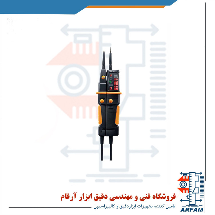 تستر ولتاژ TESTO750-2 دستگاهی به منظور تشخیص وجود و یا عدم وجود ولتاژ به هر دو شکل AC و یا DC در مدار های الکتریکی و یا هر سیستم دیگری دارای ولتاژ می باشد .ولت متر ، تستر ولتاژ قلمی غیر تماسی تستو آلمان مدل TESTO 750-2 یک تستر غیر تماسی که قادر به تست ولتاژ در محدوده از 12 تا 690 ولت DCو AC و تست پیوستگی 500> کیلو اهم میباشد. از ویژگی های خاص این تستر ولتاژ آلمانی تستو استاندارهای محافظ IP64 و استانداردهای اندازه گیری CAT IV 600V و CAT III 1000V و وزن 230 گرمی آن میباشد. از نکات قابل توجه دستگاه میتوان به توانایی کارایی در دمای -10 تا 50 درجه سانتیگرادو چراغ نشان دهنده ی ولتاژ ورودی اشاره کرد.تسترهای ولتاژ TESTO 750 اولین ابزاری هستند که دارای یک نشانگر ولتاژ LED قابل مشاهده برای همه جا هستند.این دستگاه شامل امپدانس ورودی کم ، توالی فاز، آزمون ها و دارای استانداردهای CAT III 1000 V CAT IV 600 V هستند. تستو 750 با اطمینان از فعال بودن تست مدار GFCI ارتعاش می کند.