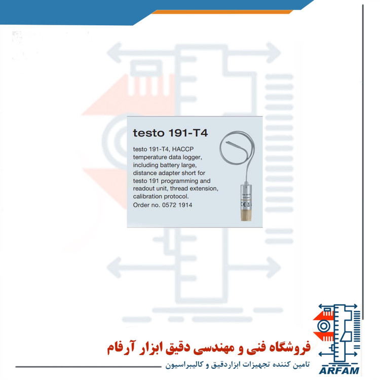 دیتالاگر دما HACCP تستوTESTO 191-T4 با پارت نامبر 05721914 و با استفاده از سنسور Pt1000 دما را از 50- تا 140 درجه سانتیگراد اندازه میگیرد و تا 60000 اندازهگیری را نیز در حافظه خود ذخیره میکند. سیکل اندازهگیری نیز بین 1 ثانیه تا 24 ساعت متغیر میباشد. این ابزار طراحی نوینی دارد و با نرم افزار کاربرپسند خود راهنمای مناسبی برای پروسههای اندازهگیری و تهیه گزارش از اندازهگیریها میباشد. از این دیتالاگر برای پروسه استرلیزاسیون و پاستوریزاسیون در مراحل فراوری غذا استفاده میشود تا بتوان دما پروسه موردنظر را در یک بازه بهینه نگه داشت. این ابزار در داخل کیسی به همراه 3 لاگر دما و 1 لاگر فشار دیگر قرار دارد که باعث میشود یک سیستم اندازهگیری کارآمد برای محصولات و صنایع غذایی محسوب شود. پیکربندی و بازخوانی همزمان هشت لاگر به طورت همزمان از طریق کیس چندکاره آن امکان پذیر است.