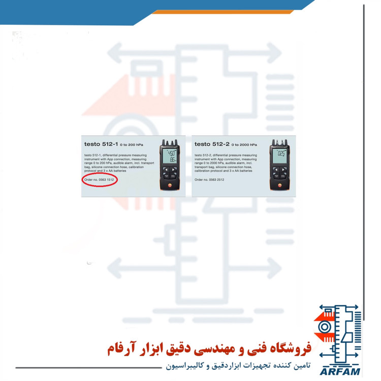 مشخصات فنی مانومتر تفاضلی رنج 0 تا 200 هکتو پاسکال تستو TESTO 512 1 :