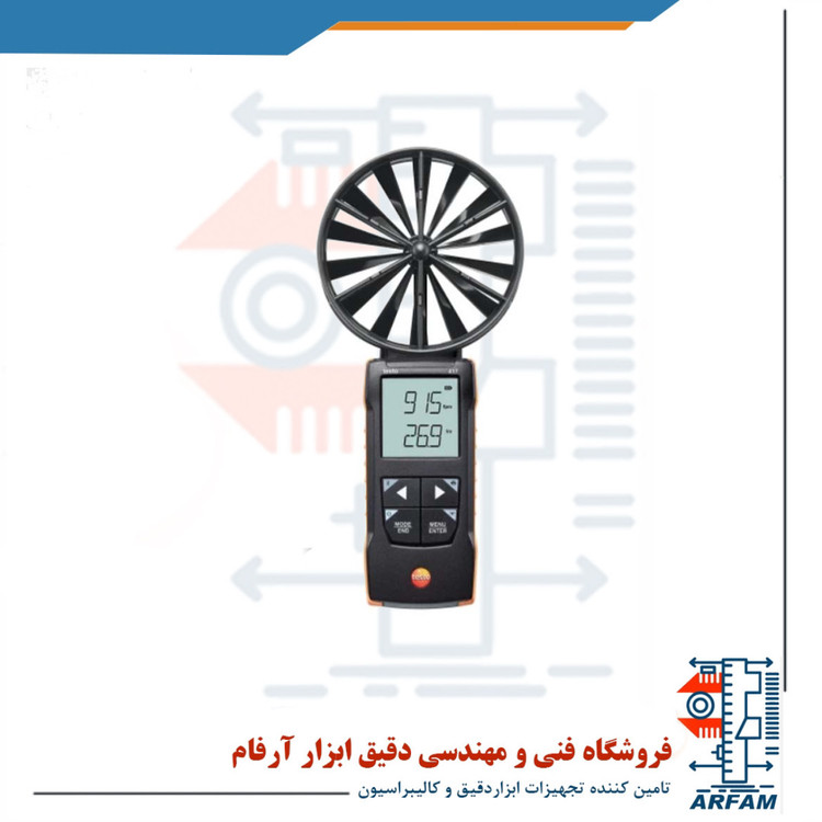 بادسنج پره ای تستو TESTO 417 با پارت نامبر 0563 0417 همراه با پره 100 میلی متری خود مقدار سرعت هوا را در بازه m/s 0.3 تا m/s 20 و حجم جریان عبوری را حداکثر تا m3/h 99999 اندازه میگیرد. علاوه براین با استفاده از یک سنسور NTC نیز دمای هوا بین بازه صفر تا 50 درجه سانتیگراد قابل اندازه گیری است. این بادسنج از نرم افزار TESTO smart App نیز پشتیبانی میکند که به کاربر در پیکر بندی بادسنج˛ ارائه جدول وگراف و ایجاد گزارشات به صورت pdf و csv کمک میکند. همچنین به کمک این نرم افزار میتوان به دادهها ذخیره شده در حافظه دسترسی پیدا کرد.