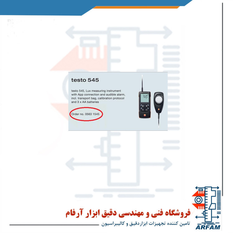 مشخصات فنی نور سنج سنسور مجزا با اتصال به موبایل برند تستو TESTO 545 :